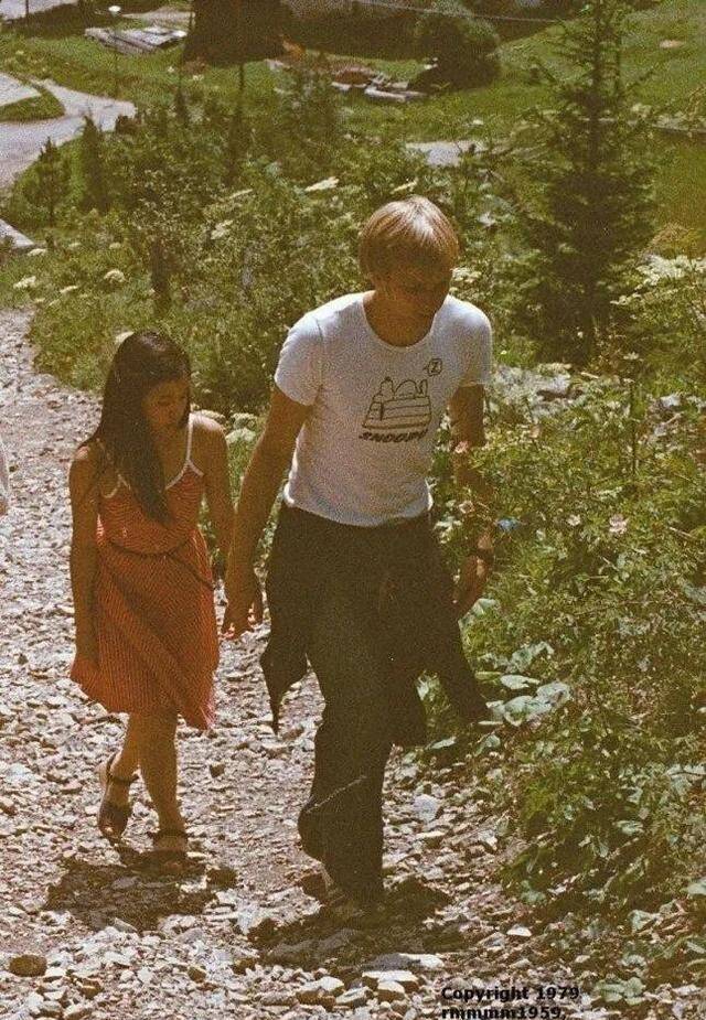 另一张中,她与Rob并肩走在伦敦石板路上,阳光洒在脸上,连发丝都透着青春气息,这些没有美颜滤镜的照片,展现了翁美玲最真实的一面,与后来荧幕上灵动机敏的“黄蓉”判若两人。